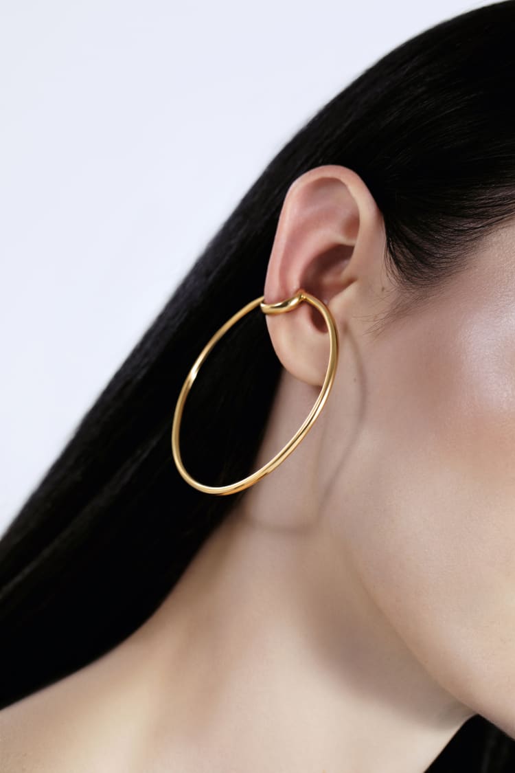 Großer goldener Ear Cuff: Hochwertiger Schmuck aus glänzendem 18-Karat-Vergoldung, trendige Ohrklemme ohne Ohrloch, komfortabler Sitz, perfektes Statement-Accessoire.